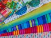 A striking collection with a kaleidoscope of stunning colours and overlapping geometric shapes in saturated jewel tones.