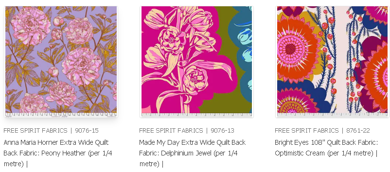 We have a few 108" wide Anna Maria quilt backs in stock, with a few more 'Coming Soon'