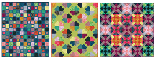 Below are some quilt designs that use the Indelible palette, along with coordinating solids.