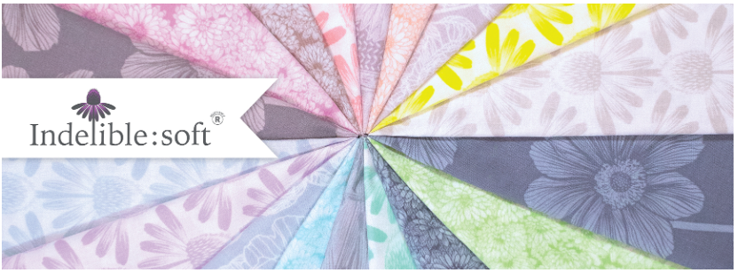 Indelible Soft - 'As I adventure into new territories with my art, I took a turn towards soft and gentle for some new colors of Indelible. All the same hand drawn florals that you love are now realized in a watercolor-esque palette. this softer assortment of color ranges from warm neutral, to cool neutral, to sunlit hues that feel as though light is beaming onto the original spectrum. These work together beautifully for modern patchwork (or even for baby) as well as highlighting some contrast when used alongside the original Indelible' - Anna Maria