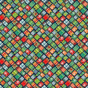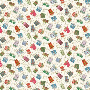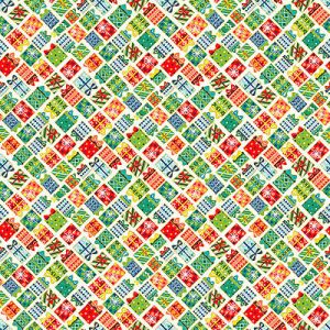 Our current selection of Christmas fabrics with wrapped Christmas presents.
