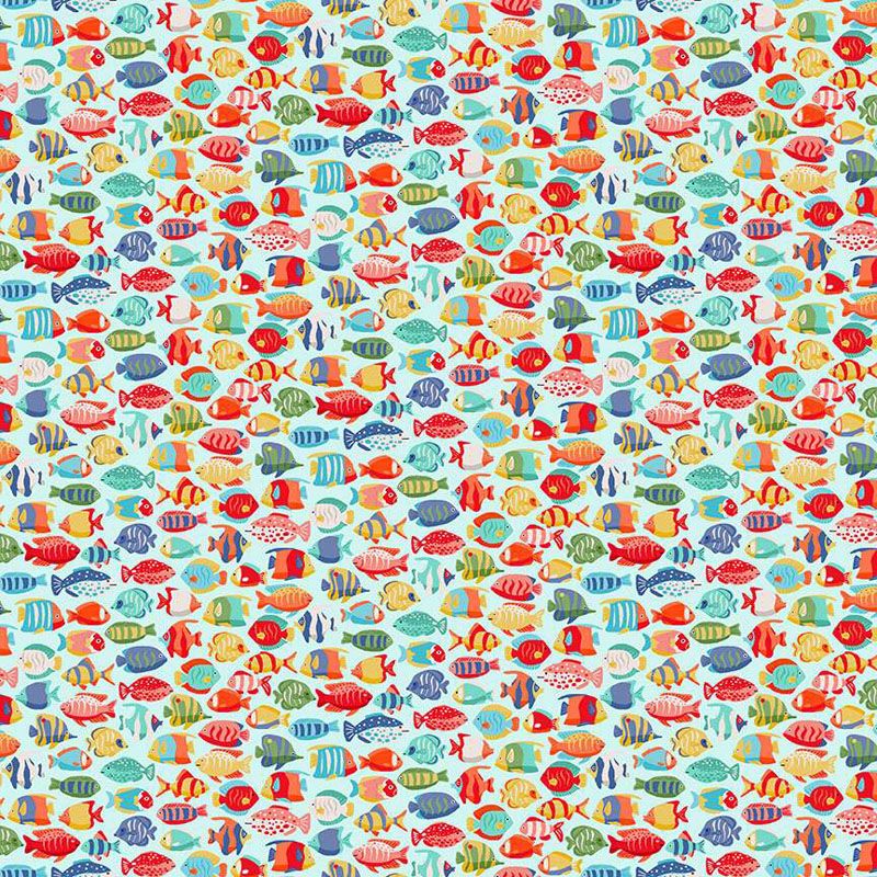 Deep Blue Sea Fabric: Fish Shoal, Light Blue