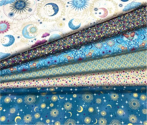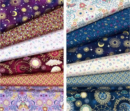 2 of each fabric design from the Luna fabric designed by Makower is used to make up this patchwork palette