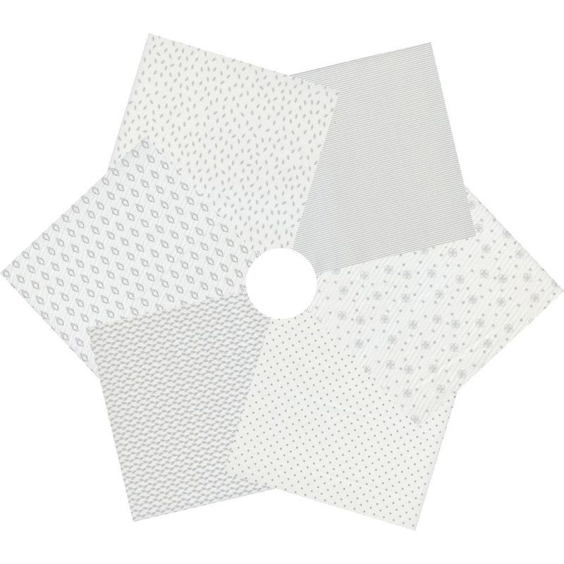 6 fabrics from the Mixed Bag of Bonbons range by Jen Kingwell Designs for Moda, in a Neutral Grey colourway.