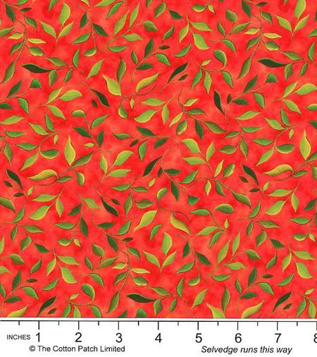 Modern Florals fabric: Leaf Sprigs, Orangey Red