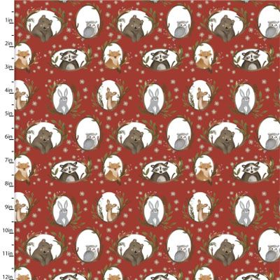Cozy Forest Fabric: Framed Friends (per 1/4 metre)