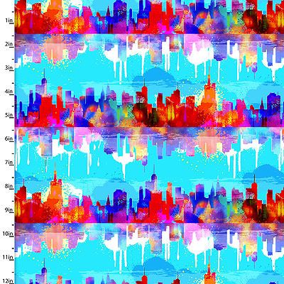 Dogs in the City fabric: Urban Cityscape Turquoise (per 1/4 metre)