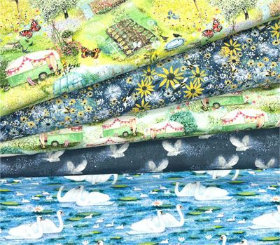 A selection of 5 fabrics from the Secret Garden by Lucy Grossmith collection for 3 Wishes.