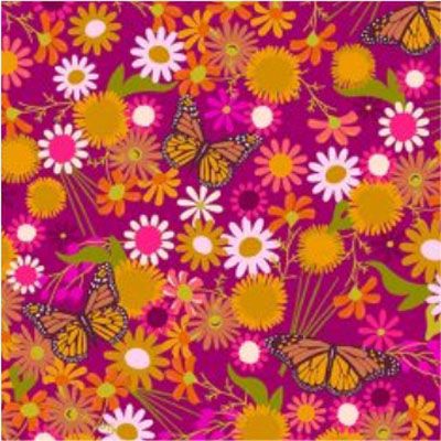 Alison Glass Fabric Monarchs and Flowers Purple (per 1/4 metre)