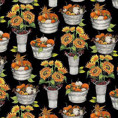 Fall Delight Fabric: Pumpkins in Tubs Orange (per 1/4 metre)