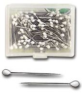 2cm (3/4") pins with a white polyester head, 105 per box. Small pins useful for holding small applique pieces onto the base fabric.