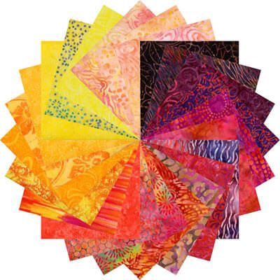 Batiks come from various Batik collections directly cut from our stock. The image on the left is only intended as a guide to the types of fabric that appear in the Batiks Charm pack. As the packs are cut from a random selection of current stock please take a look at our Batiks fabric selection for a more accurate indication of what may be included in the pack.