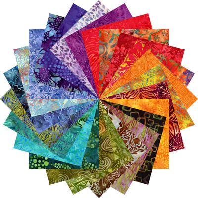 The image on the left is only intended as a guide to the types of fabric that appear in the Batiks Charm pack. As the packs are cut from a random selection of current stock please take a look at our Batiks fabric selection for a more accurate indication of what may be included in the pack.