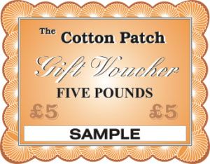 Gift vouchers for the value of £5 to be used on the cottonpatch.co.uk website. A code willl be sent to you by email which can then be used during checkout to redeem the value of the Gift voucher. The code can only be used once and is only valid on the website and not instore or at events that we may attend.