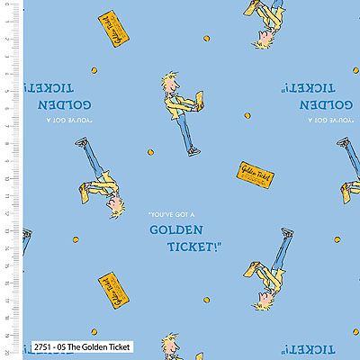 Charlie & the Chocolate Factory Fabric: Golden Ticket Blue