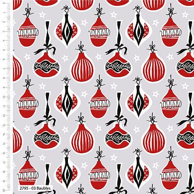 V&A A Christmas Wish fabric: Baubles Grey (per 1/4 metre)