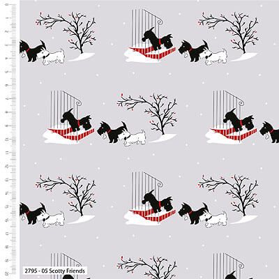 V&A A Christmas Wish fabric: Scotty Friends Grey (per 1/4 metre)