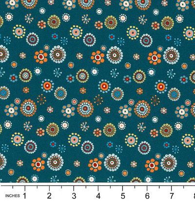 Broderi fabric: Flowerheads Cyan (per 1/4 metre)