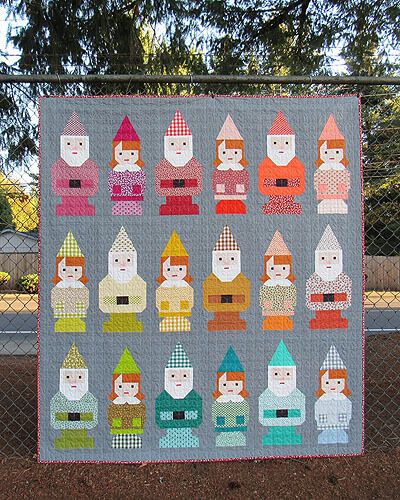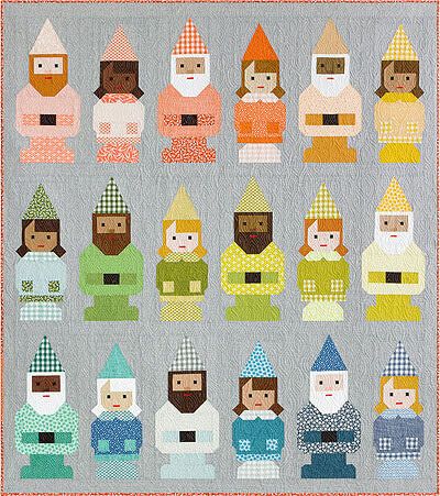 Gnome siblings Norm and Nanette can be pieced using conventional patchwork techniques. The gnomes’ hats are cut using the included full‐size cutting guide and pieced using a shortcut method that avoids fussy matching of points. Everything else is made using squares and rectangles and conventional patchwork techniques. No paper piecing!