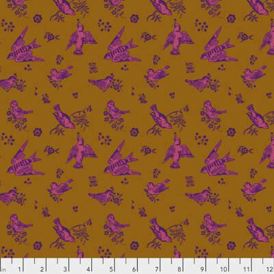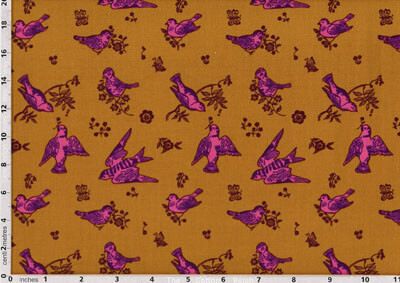 Free Spirit Designers Fabric: Birds and Love Gold (per 1/4 metre)