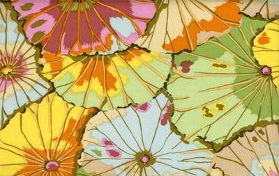 Very similar to the yellow Lotus leaf fabric, but with green instead of yellow as dominating colour. Vey rich and varied colours, but still harmonious and quite dreamy. Fresh and happy.
