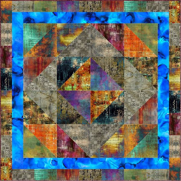 This quilt features Tim Holtz’s digitally printed fabrics from his Abandoned and Alchemy collections. These are fascinating fabrics and because of the large design repeat they work at both small and large scales. The digital printing really makes the brighter colours pop and the level of detail in the designs draws you in to take a closer look. This quilt kit contains all the fabrics for the quilt top and binding plus instructions..