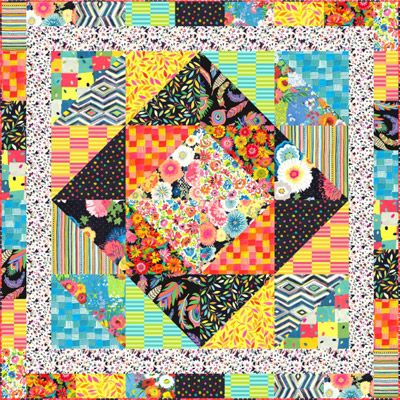Liquorice Allsorts uses designs by Sarah Campbell, Kaffe Fassett, Brandon Mably, Anna Maria Horner and Lorraine Turner. This quilt kit contains all the fabrics for the quilt top and binding plus instructions.