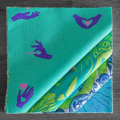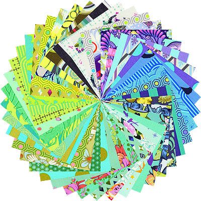 A selection of 42 of Tula's prints in cool, chilled colours. Fabrics are drawn from our current stock and include a variety of her collections. Fabrics are cut to approximately 5" square.