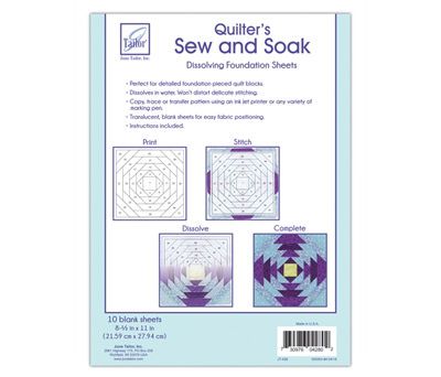 Perfect for detailed foundation pieced quilt blocks. Disolves in water and won;t distort delicate stitching. Copy, trace or transfer pattern using ink jet printer or any variety of marking pen.