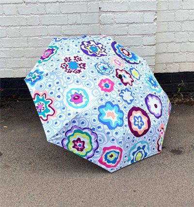 Beautiful printed umbrella with Kaffe Fassett's Milllefiore design and pop of Aqua color underneath. Kaffe Fassett Designs notions will bring some glorious color to the sewing studio of all Kaffe Fassett fans.
