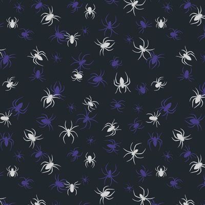 Haunted House Fabric Spiders on Black (Glow in the Dark) Lewis and Irene