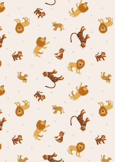 Small Things Wild Animals Fabric: Lions and Tigers Cream