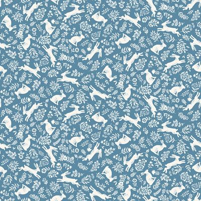 Foxwood Fabric Makower Bounding Bunnies Blue
