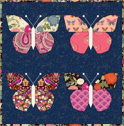Please note that foundation paper piecing templates are included in the pattern. These will require photocopying a number of times, one for each of the 4 butterflies in the cushion