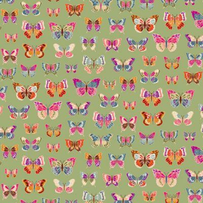 Luxe fabric: Butterflies Green (per 1/4 metre)