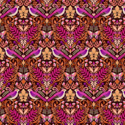 Luxe fabric: Damask Birds Pink (per 1/4 metre)