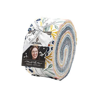 A selection of 40 fabrics from Gingiber's Nocturnal collection for Moda, cut to 2.5" x 44" strips.