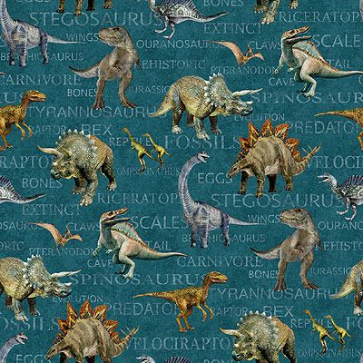 Prehistoric World: Dinosaur Text Blue (per 1/4 metre)