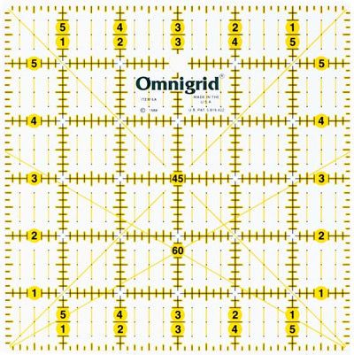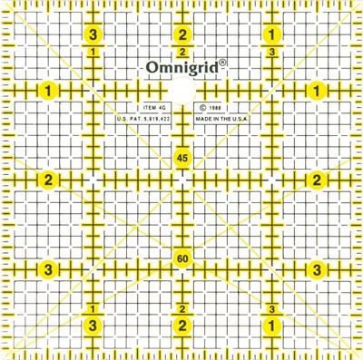 The Omnigrid® ruler set contains one each of 3 Omnigrid quilting rulers (4” and 6” squares and 1” x 6”) to execute a variety of measurements; the 4” square includes a 1/8” grid for miniatures; the 6” square includes 30º, 45º and 60º angles; the 1” x 6” checks and marks seam allowances.