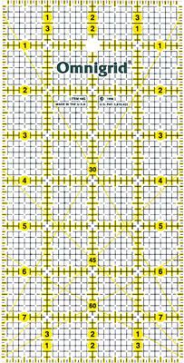 The Omnigrid® rectangle ruler set contains 3 rulers (1" x 6", 4" x 8", 6" x 12") and is used to cut strips, shapes and bias pieces when quilting. It is particularly handy for secondary cutting after cutting strips, and it can also be used to cut fat quarters into strips and shapes.
