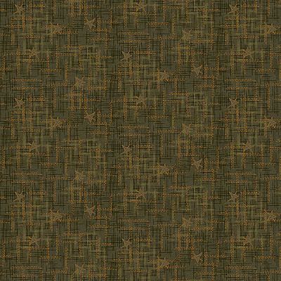 One S1ster Fabrics: Crosshatch Stars Green (per 1/4 metre)