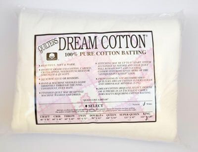 Because there are no scrims, glues, resins or binders, not only does Dream Cotton retain a beautiful drape, but your hand and machine needles will glide smoothly through this fine, consistent cotton batting.