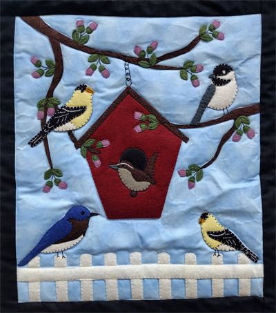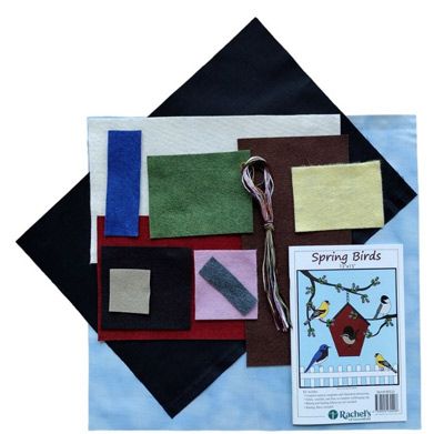 The Spring Birds Kit is not difficult to make and includes everything needed to make a 13"x15" wall hanging quilt, except for the batting and backing.