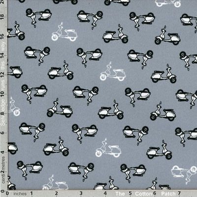 Sevenberry Prints Fabric: Mopeds Grey (per 1/4 metre)