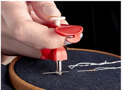 Really makes working with multiple layers of fabric so much easier when fingers are struggling to pull the needle through. Use it all the time when quilting but also with heavier embroidery