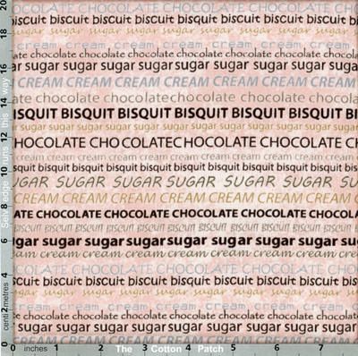 Five o'Clock Tea Fabric: Tea Text on Pink (per 1/4 metre)
