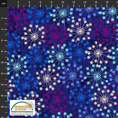 Flowers in the Wind fabric: Dandelions Cobalt (per 1/4 metre)