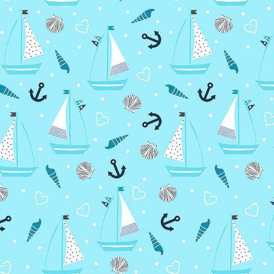 Just for Kids fabric: Sailboats Aqua (per 1/4 metre)