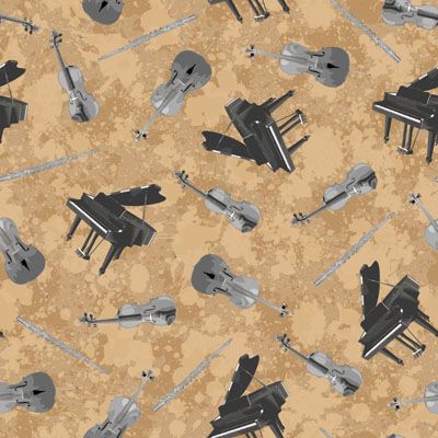 My Classic Songs fabric: Musical Instruments Tan Stof