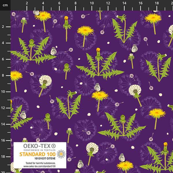 Spread the Seeds fabrics: Dandelion Plants Purple by Stof Fabrics